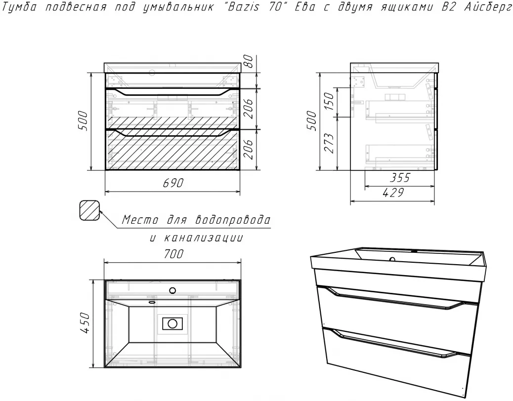 Характеристики товара Тумба под умывальник подвесной Айсберг Bazis 70 белый DA5916T