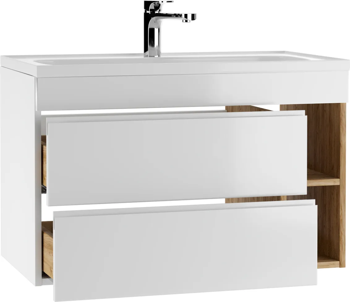 Тумба под умывальник подвесной Домино Frost 80 белый/дуб вотан DF3402T