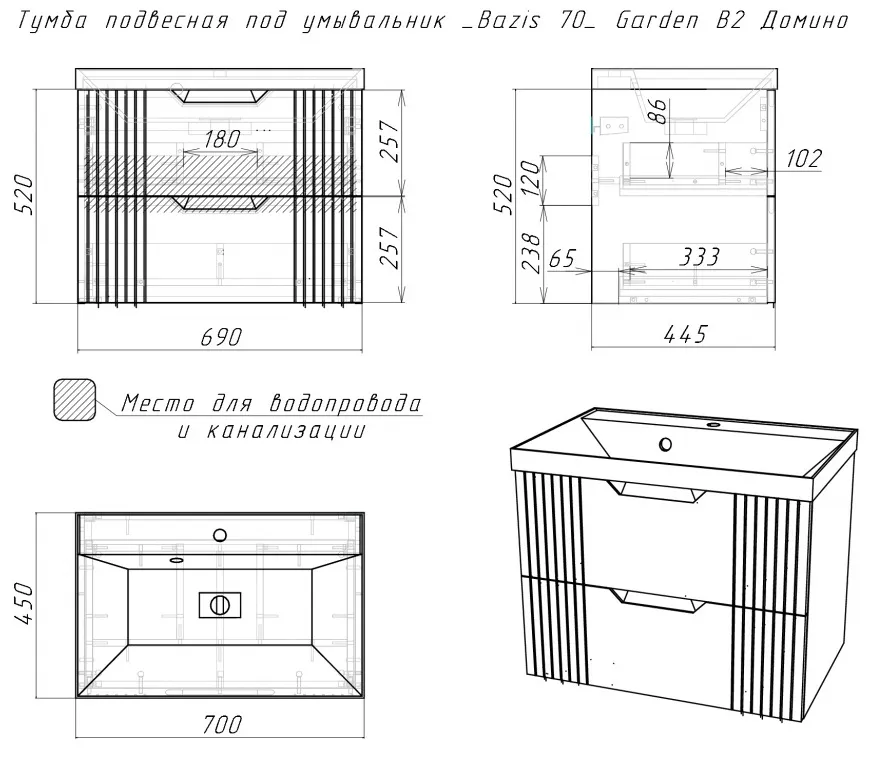 Характеристики товара Тумба под умывальник подвесной Домино Garden 70 зеленый матовый DG2503T