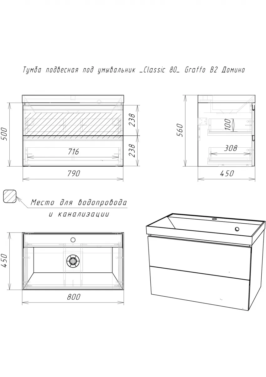 Характеристики товара Тумба под умывальник подвесной Домино Graffo 80 светло-серый DGr2421T