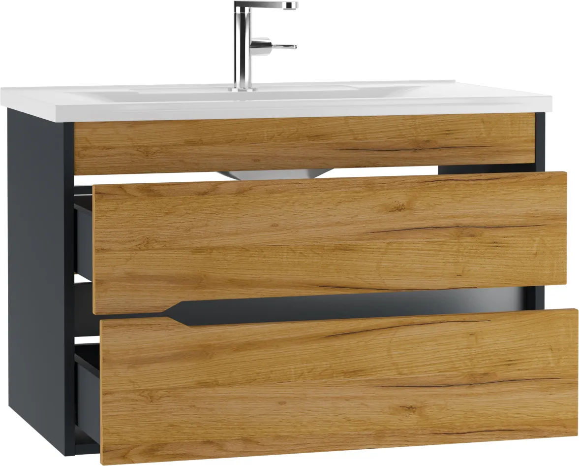Тумба под умывальник подвесной Домино Karat 80 дуб вотан/антрацит DK3202T