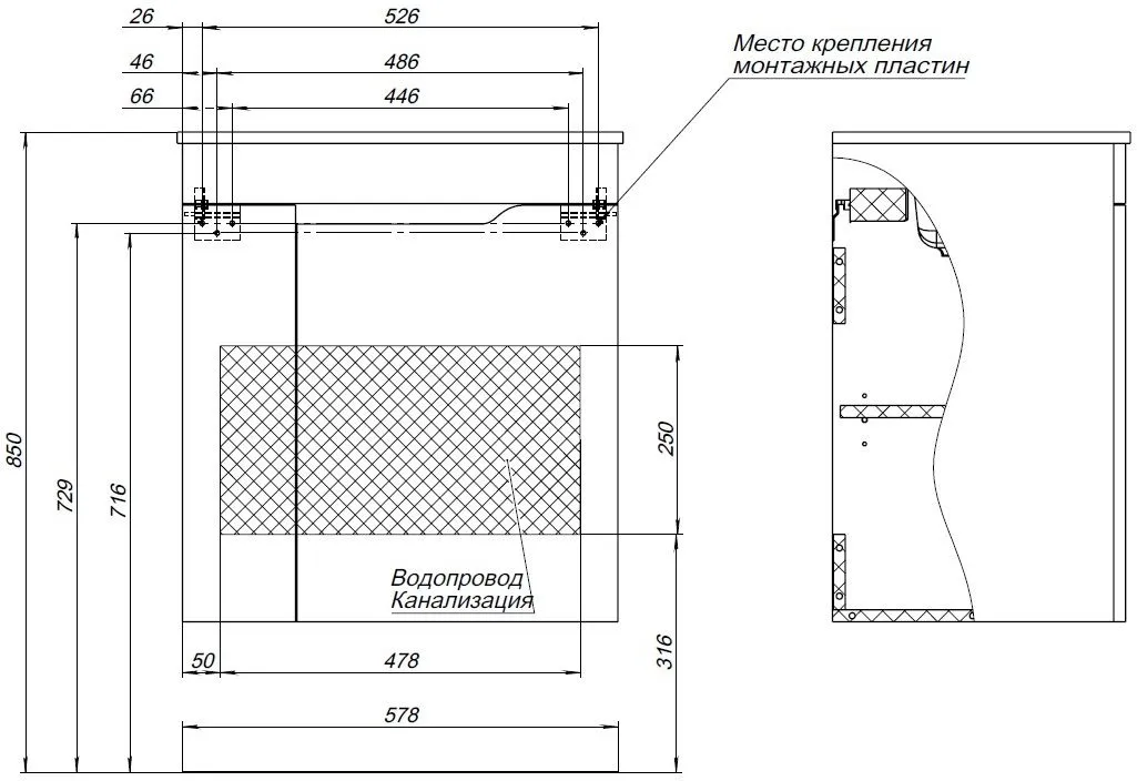 Характеристики товара Тумба-умывальник Aquanet Практика 60 белый матовый 00330453+44060