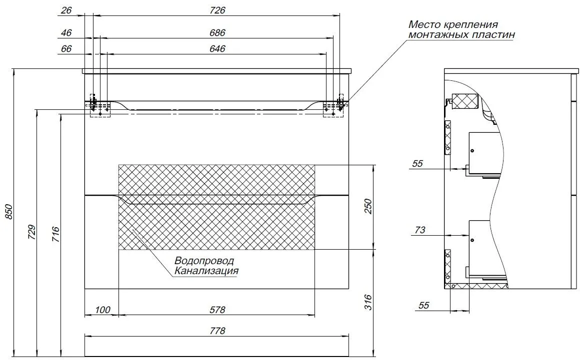 Характеристики товара Тумба-умывальник Aquanet Практика 80 белый матовый 00330459+44080