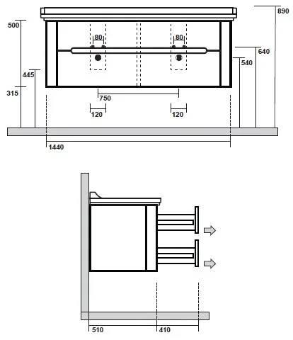Характеристики товара Тумба-умывальник Kerasan Waldorf 150 Nero matt 925431+4143K1bi/cr*3
