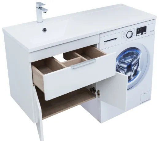 Тумба-умывальник над стиральной машиной Aquanet Ирис new 120 L белый глянец 00310148+НФ-00007663