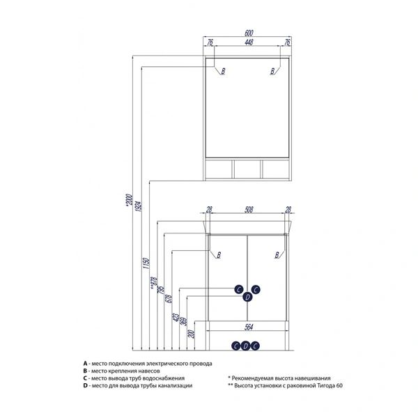 Характеристики товара Тумба-умывальник напольная Aquaton Йорк 60 белый/дуб сонома 1A1702K1YOAD0