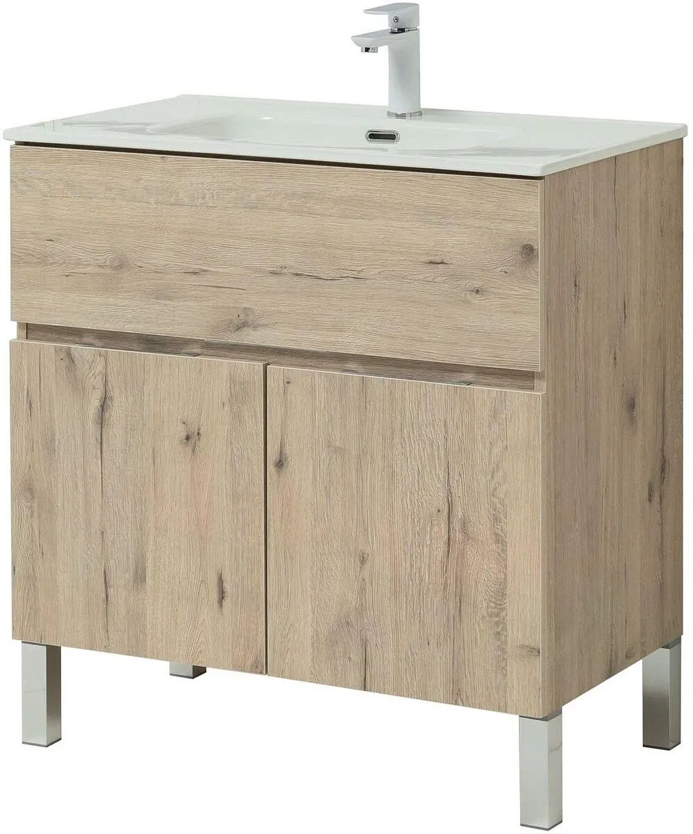 Тумба-умывальник напольная Aquanet Алвита New 80 дуб веллингтон 00277553+00254364