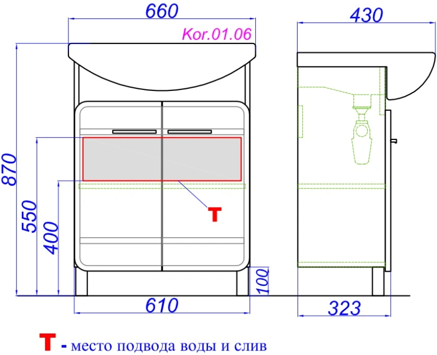 Характеристики товара Тумба-умывальник напольная Aqwella Corsica 65 белый Kor.01.06+4640021062296