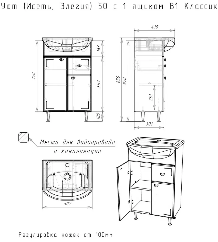 Характеристики товара Тумба-умывальник напольная Айсберг Классик 50 белый DA1015T+46200081927581