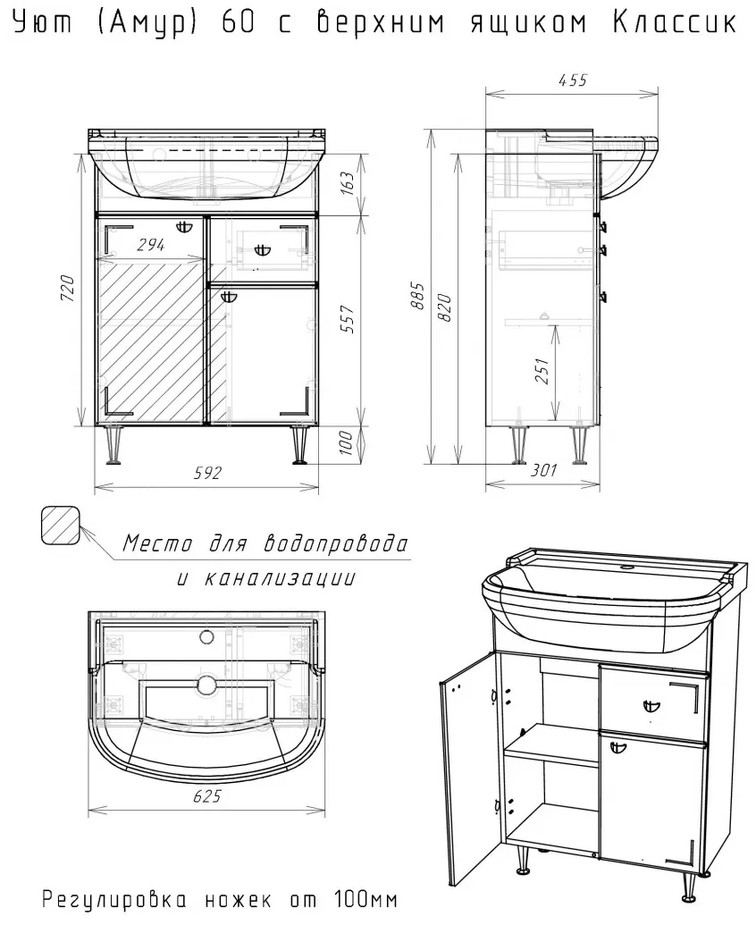 Характеристики товара Тумба-умывальник напольная Айсберг Классик 60 белый DA1024T+4620008192772