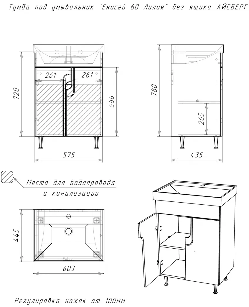 Характеристики товара Тумба-умывальник напольная Айсберг Лилия 60 белый DA2013T+4607152361674