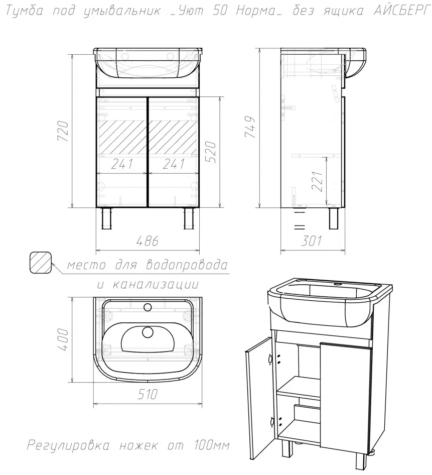 Характеристики товара Тумба-умывальник напольная Айсберг Норма 50 белый DA1628T+46200081927581