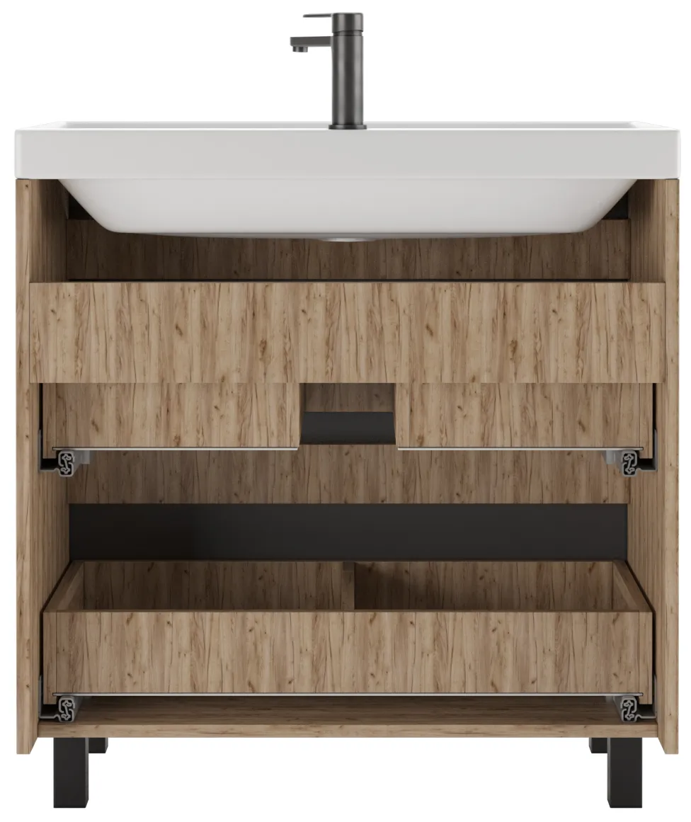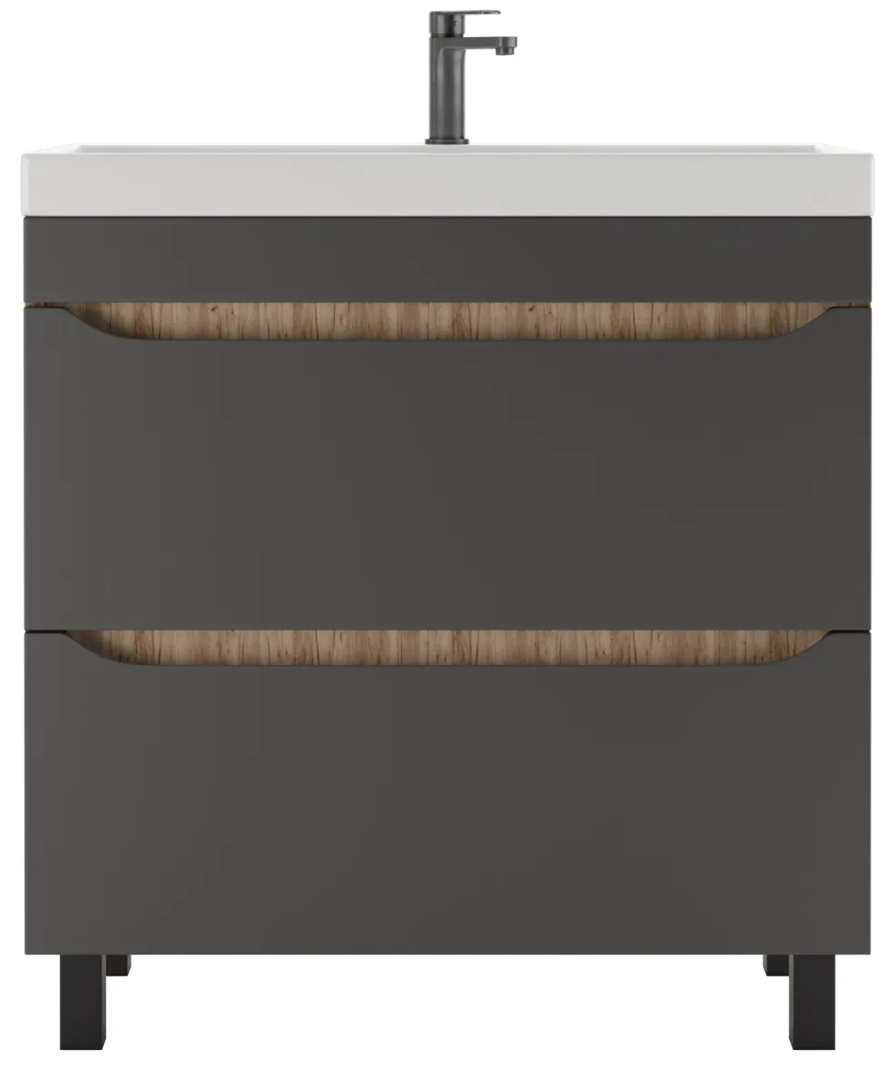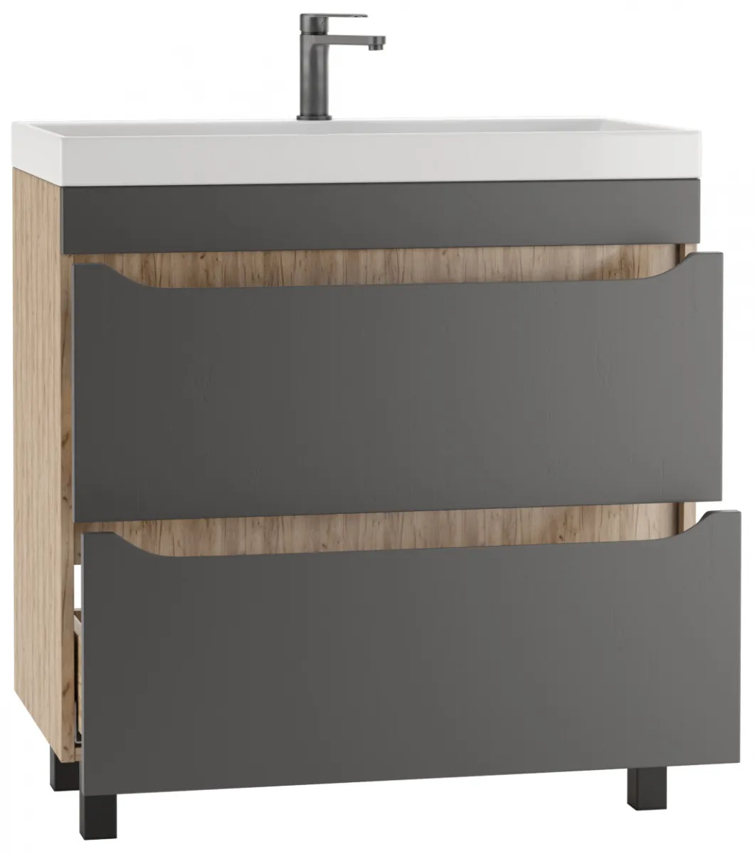Тумба-умывальник напольная Домино Bruno 80 графит/дуб вотан DBr2904T+4627173210188