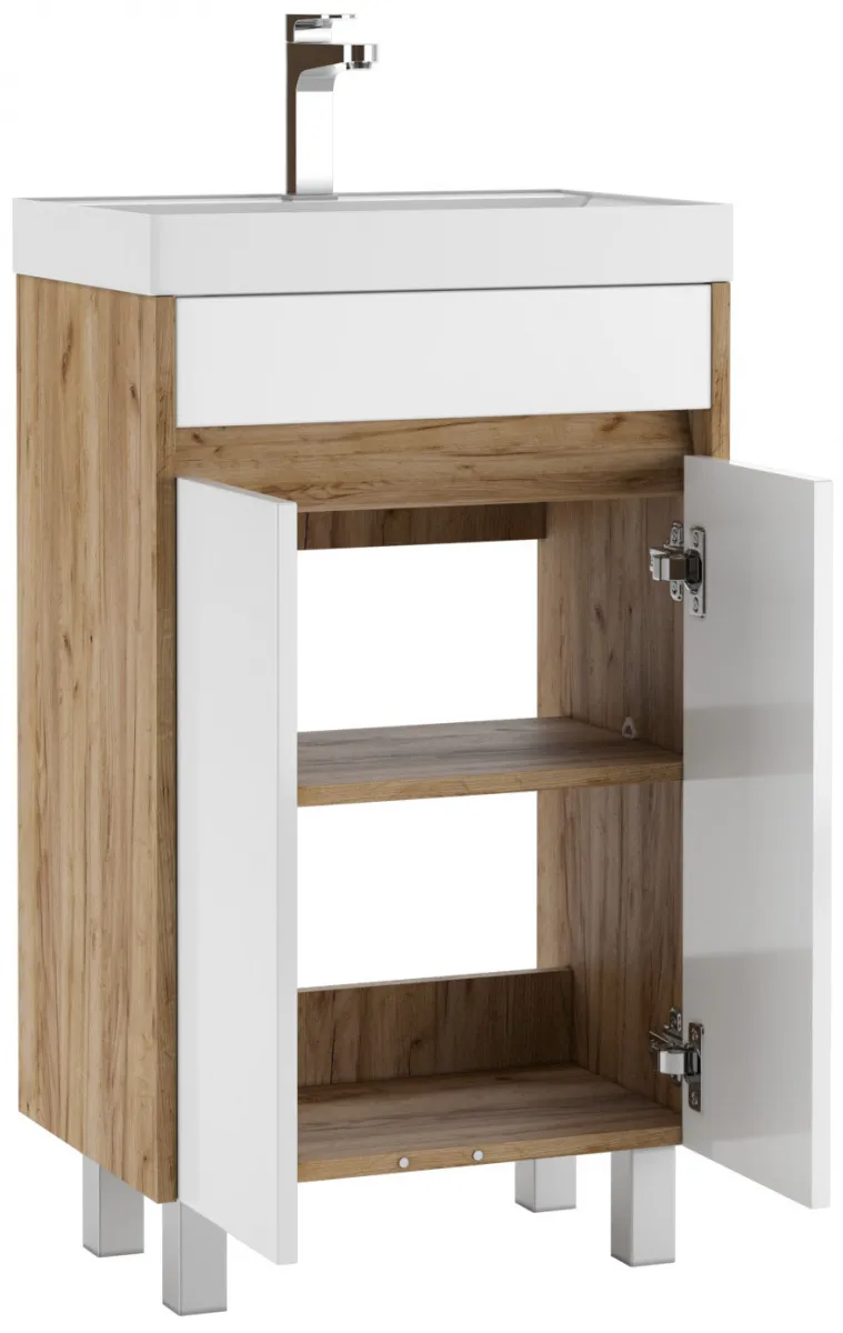 Тумба-умывальник напольная Домино Karlo 50 белый/дуб вотан DK5301T+4627173210157