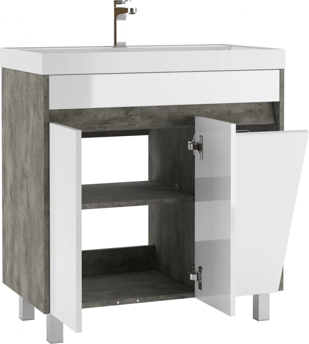 Тумба-умывальник напольная Домино Karlo 80 белый/бетон DK5311T+4627173210188