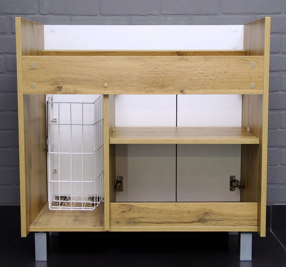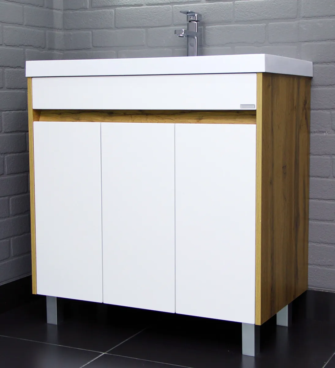 Тумба-умывальник напольная Домино Karlo 80 белый/дуб вотан DK5304T+4627173210188