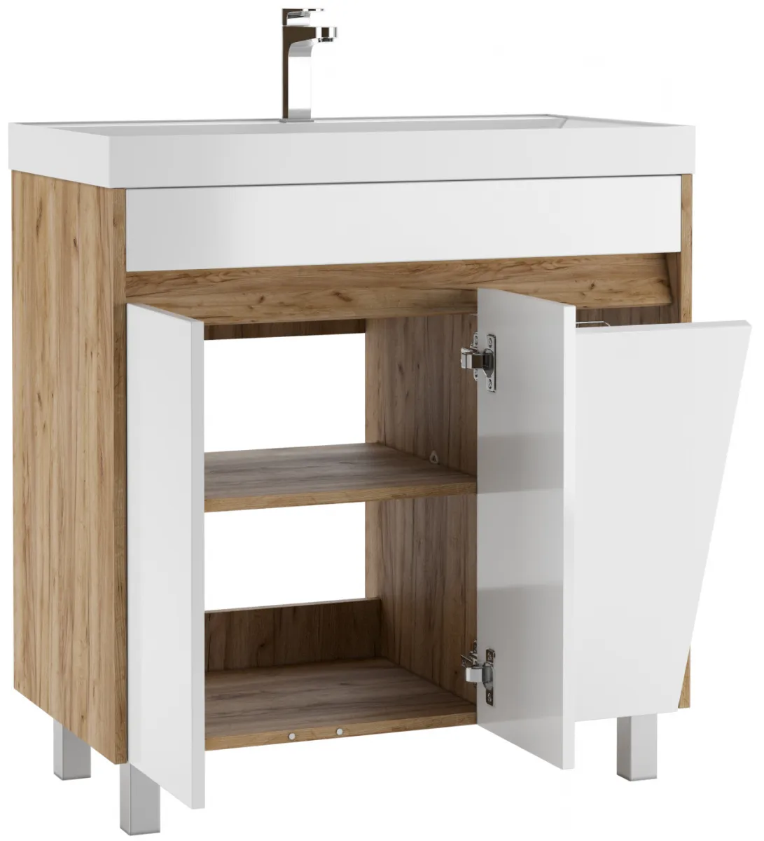 Характеристики товара Тумба-умывальник напольная Домино Karlo 80 белый/дуб вотан DK5304T+4627173210188