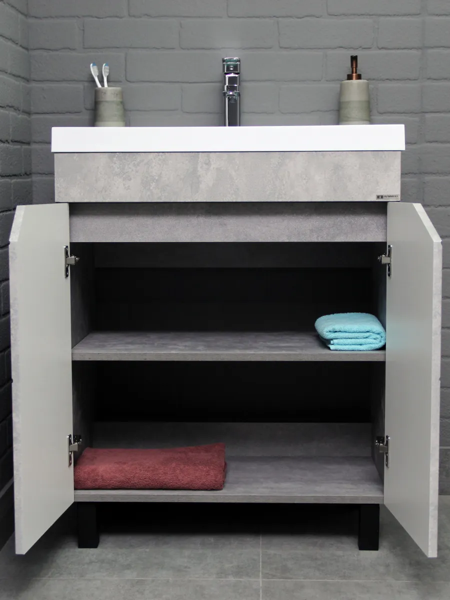 Тумба-умывальник напольная Домино Vector 70 метрополитан грей/бетон серый DV6613T+4627173210171