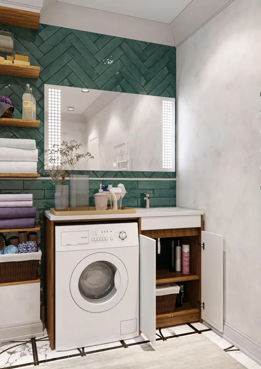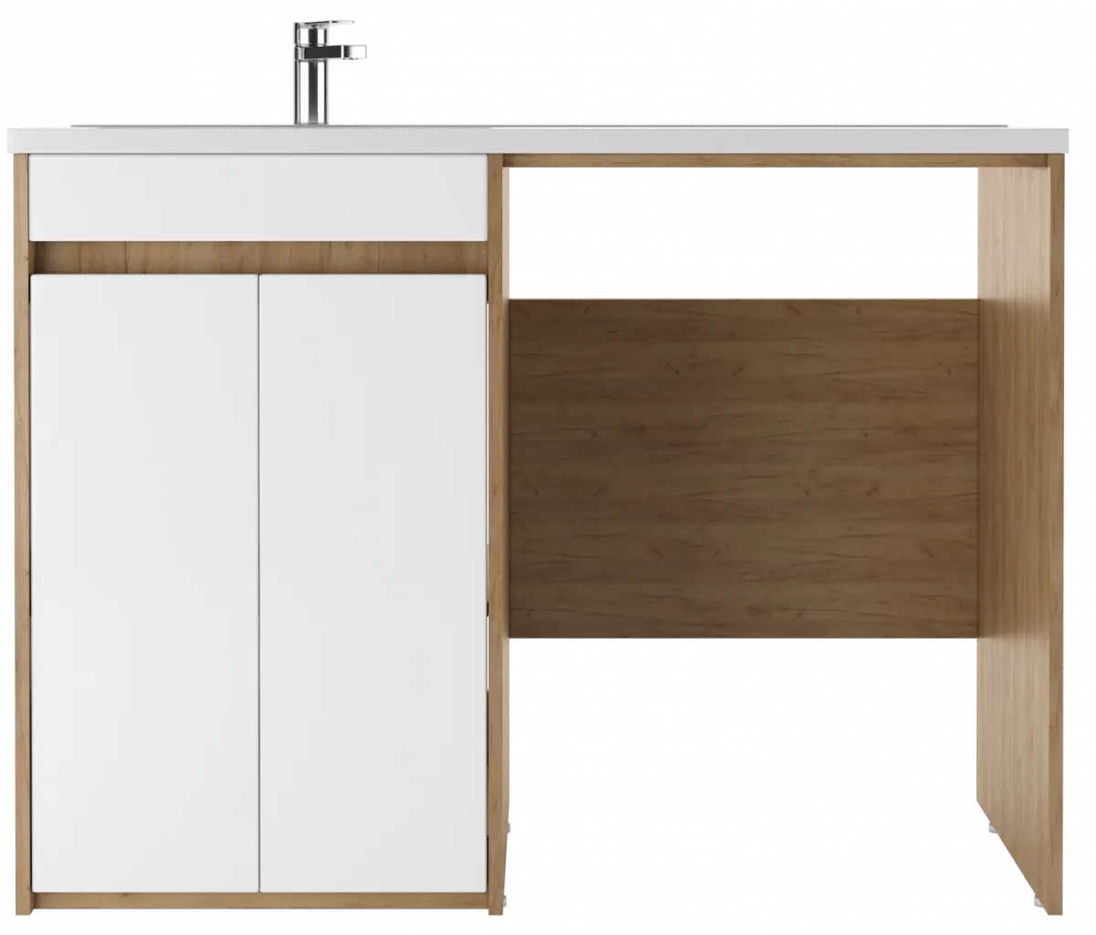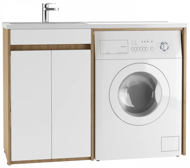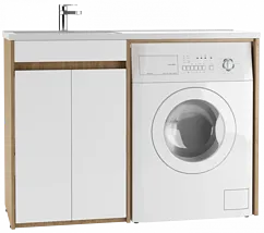 Тумба-умывальник напольная над стиральной машиной Айсберг Домино 120 белый/дуб вотан DD4213T+