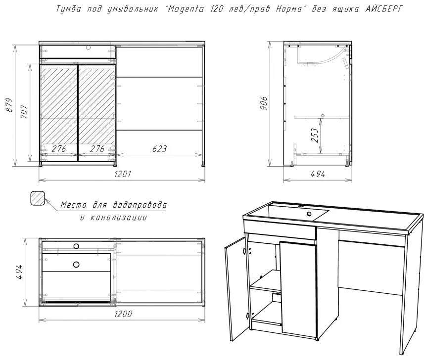 Характеристики товара Тумба-умывальник напольная над стиральной машиной Айсберг Норма 120 белый DA1659T+