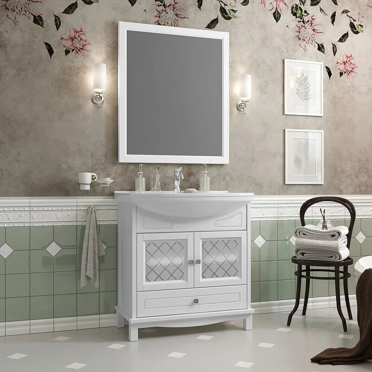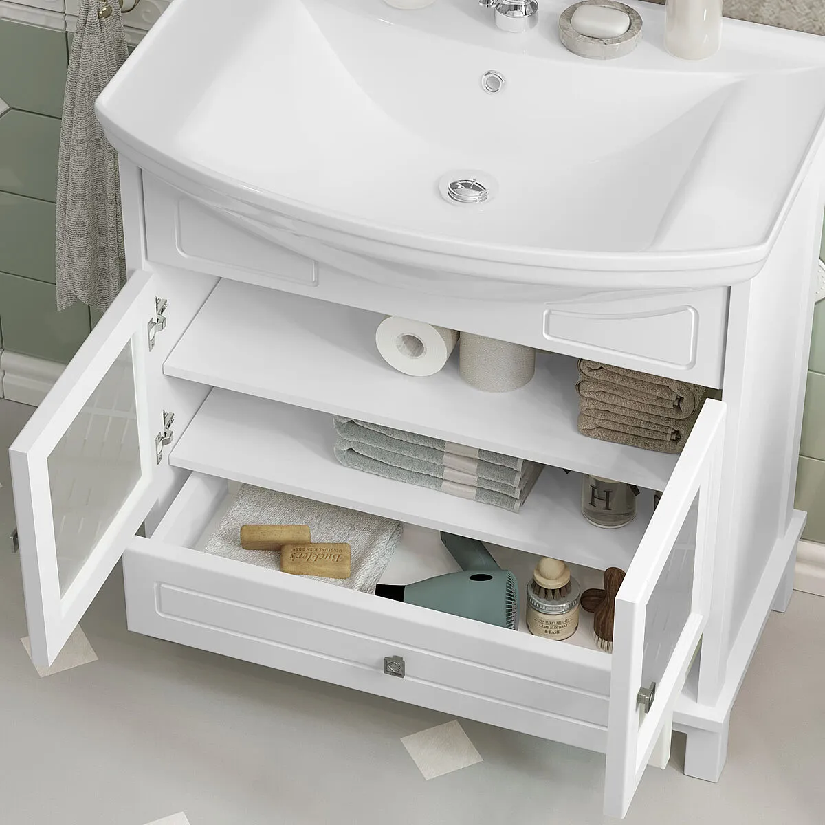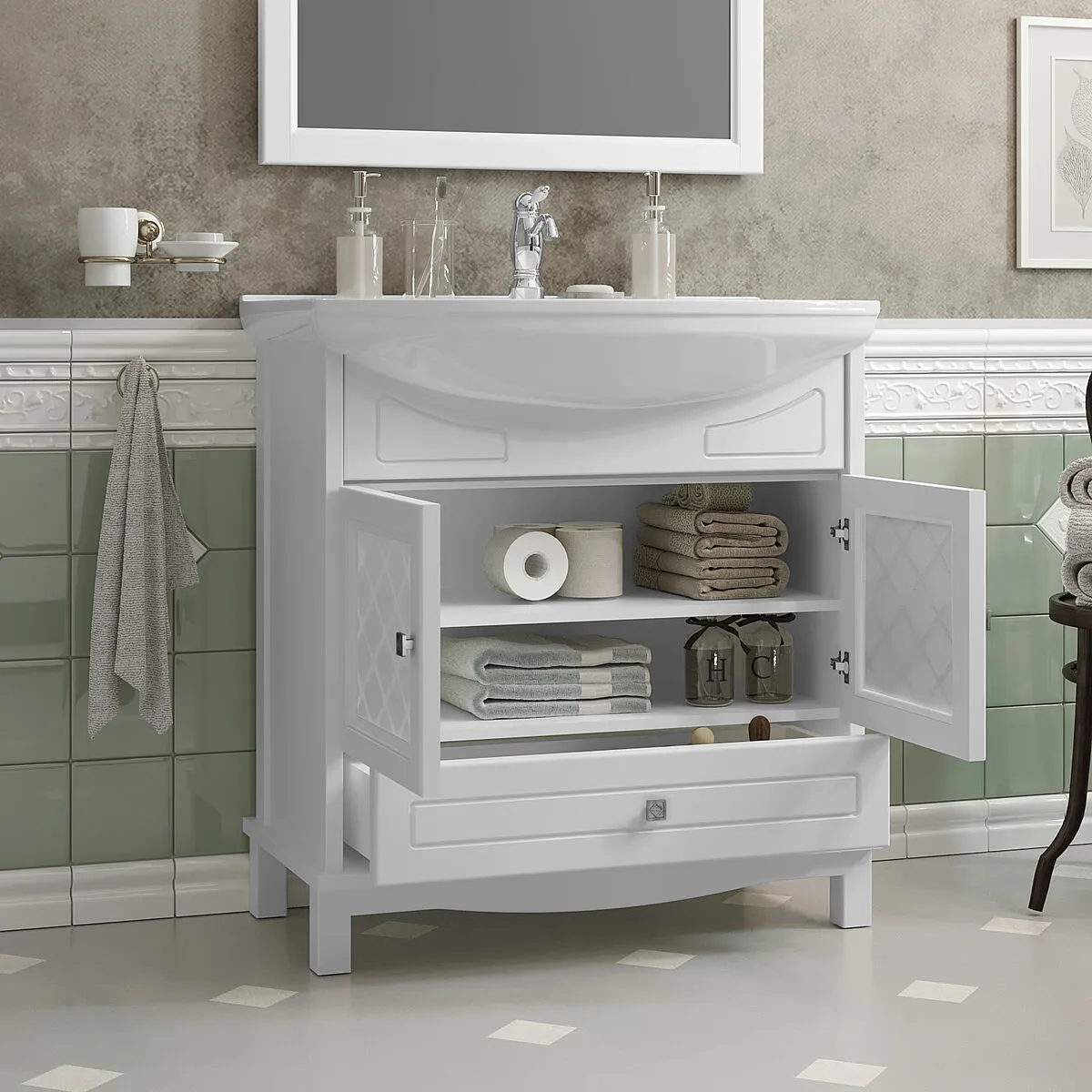 Тумба-умывальник напольная Opadiris Омега 75 белый матовый 00-00007357+4620008197470