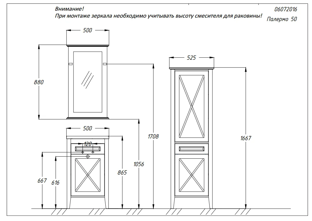Характеристики товара Тумба-умывальник напольная Opadiris Палермо 50 светлый орех 00-00002360+030900-u