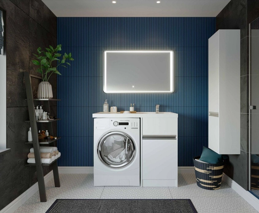 Характеристики товара Тумба-умывальник напольная над стиральной машиной Aquaton Лондри 105 R белый 1A2360K0LH010