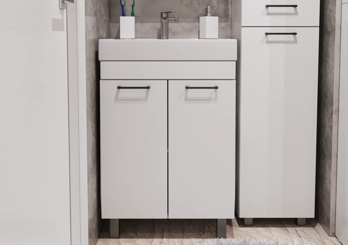 Тумба-умывальник напольный Айсберг Контраст 60 белый DA2709T+4607152361674