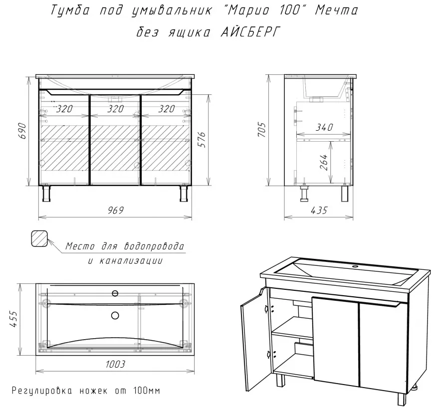 Тумба-умывальник напольный Айсберг Мечта 100 белый DM2327T+4640021065204