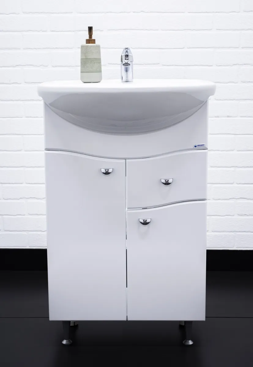 Тумба-умывальник напольный Айсберг Волна 55 белый DA1017T+Вн МуБ03