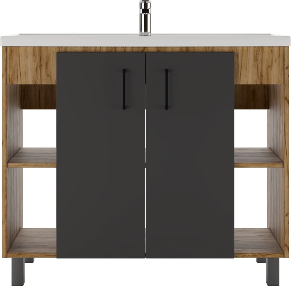 Тумба-умывальник напольный Домино Craft 100 графит/дуб вотан DCr2205T+4640021065204