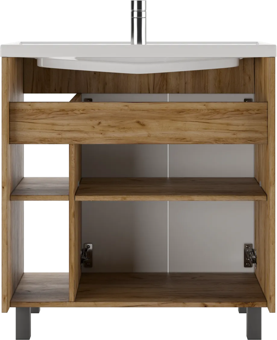Характеристики товара Тумба-умывальник напольный Домино Craft 80 графит/дуб вотан DCr2202T+4640021064733