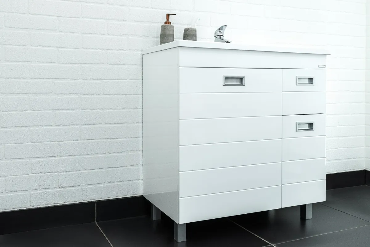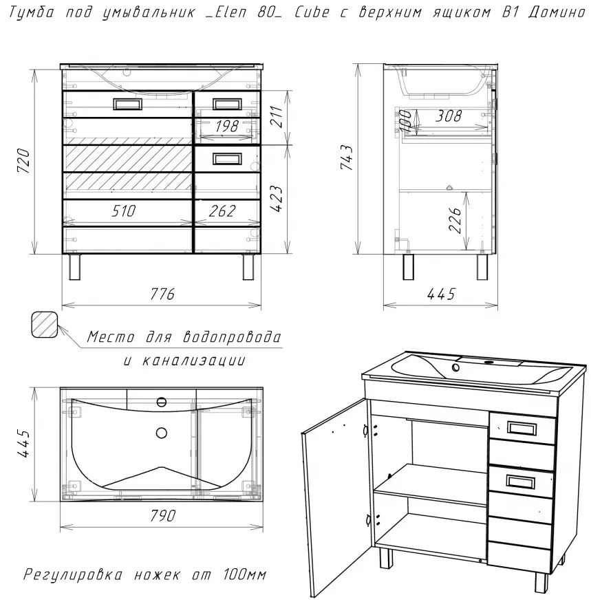 Характеристики товара Тумба-умывальник напольный Домино Cube 80 белый DC5004T+4627173210119