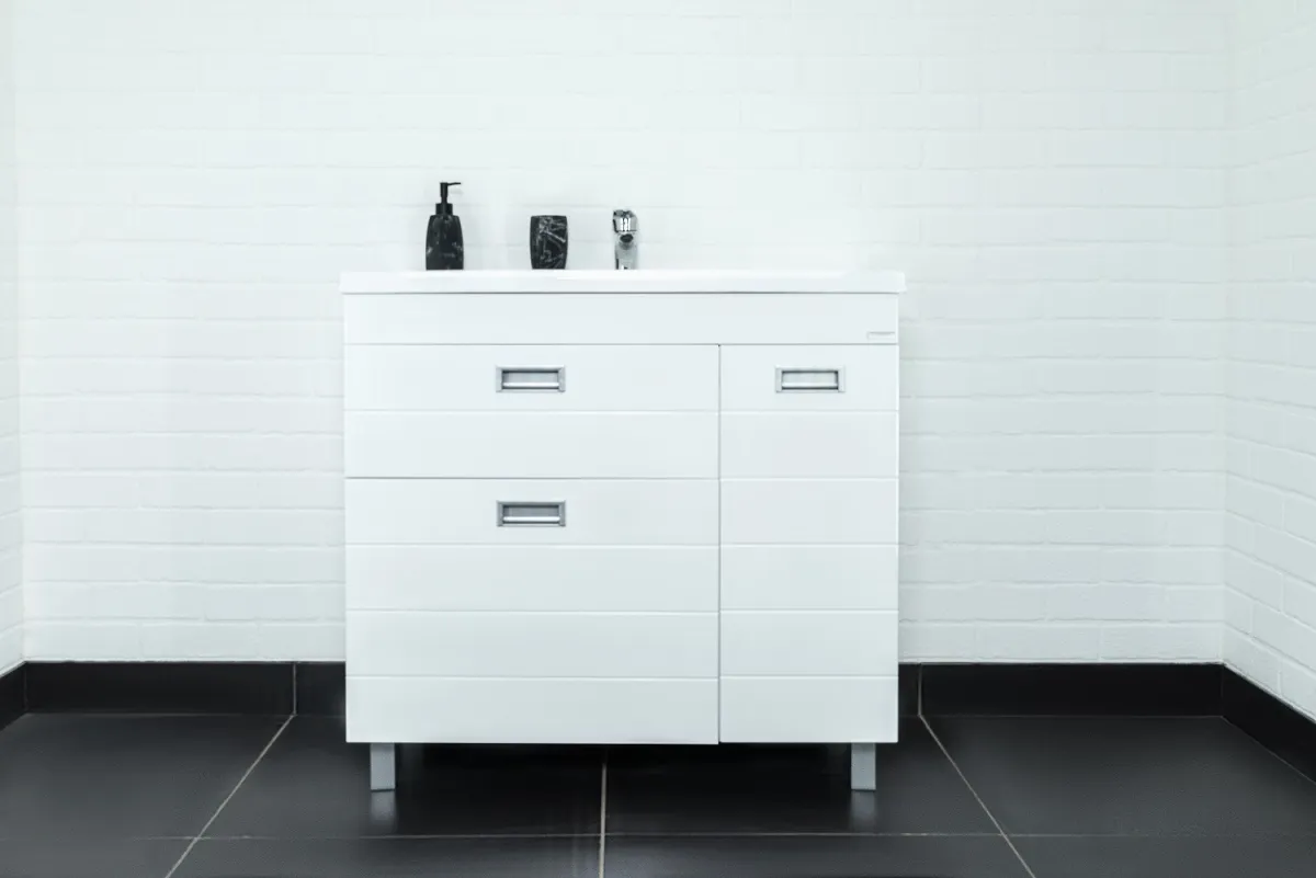 Характеристики товара Тумба-умывальник напольный Домино Cube 90 белый DC5005T+4627173210126