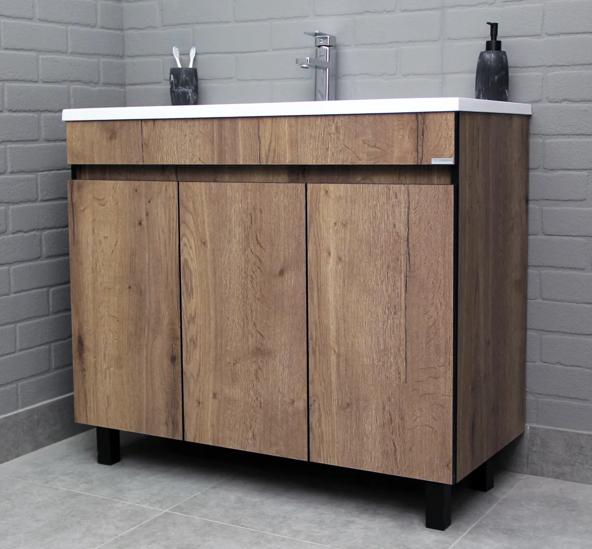 Тумба-умывальник напольный Домино Dolche 100 дуб галифакс табак DD5402T+4627173210447