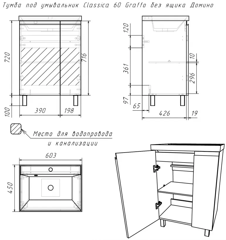 Характеристики товара Тумба-умывальник напольный Домино Graffo 60 светло-серый DGr2419T+4627173210164