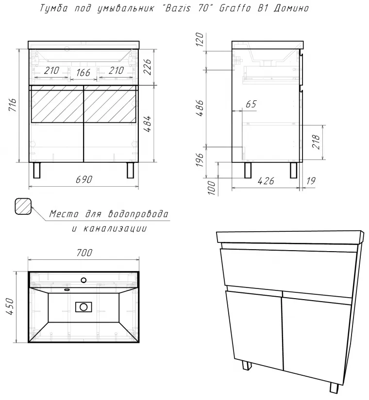 Характеристики товара Тумба-умывальник напольный Домино Graffo 70 белый DGr2401T+4670142930037
