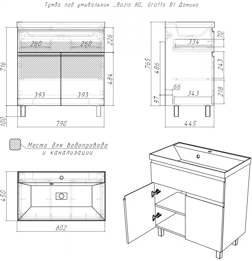 Характеристики товара Тумба-умывальник напольный Домино Graffo 80 светло-серый DGr2416T+4670142930020