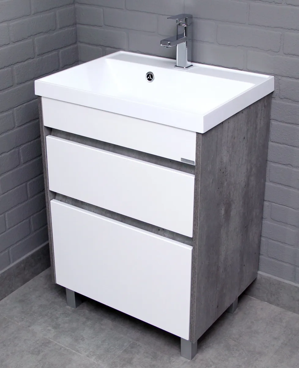 Тумба-умывальник напольный Домино Karlo 60 белый/бетон DK5314T+4627173210164