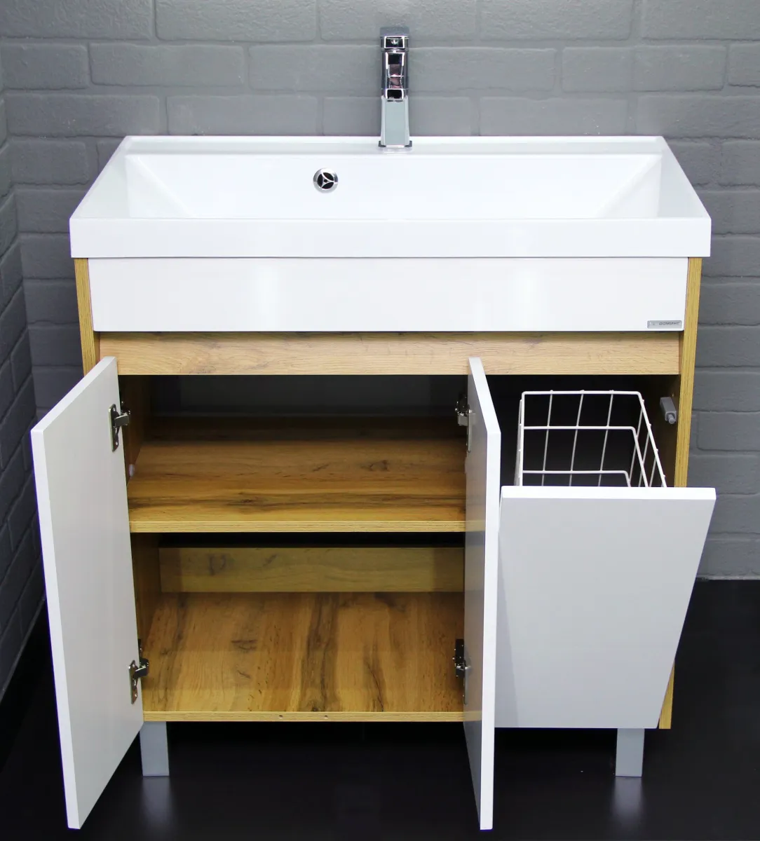 Тумба-умывальник напольный Домино Karlo 80 белый/дуб вотан DK5304T+4627173210188