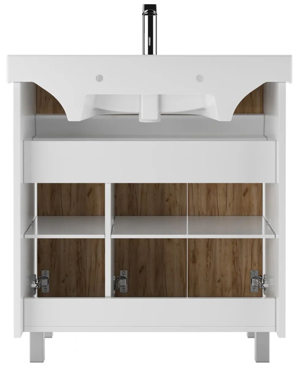 Тумба-умывальник напольный Домино Uno 80 дуб вотан/белый DU1507T+WB.FN/Fest/80-C/WHT.G/S1