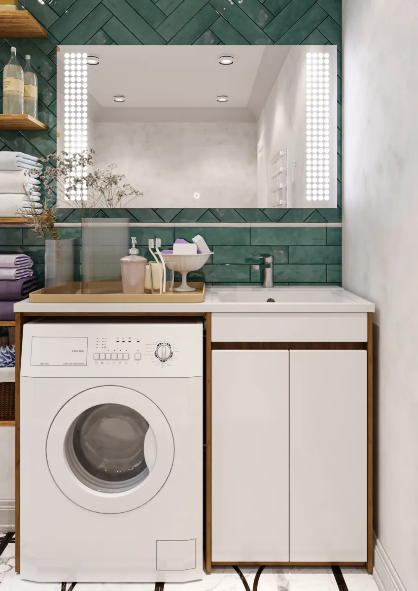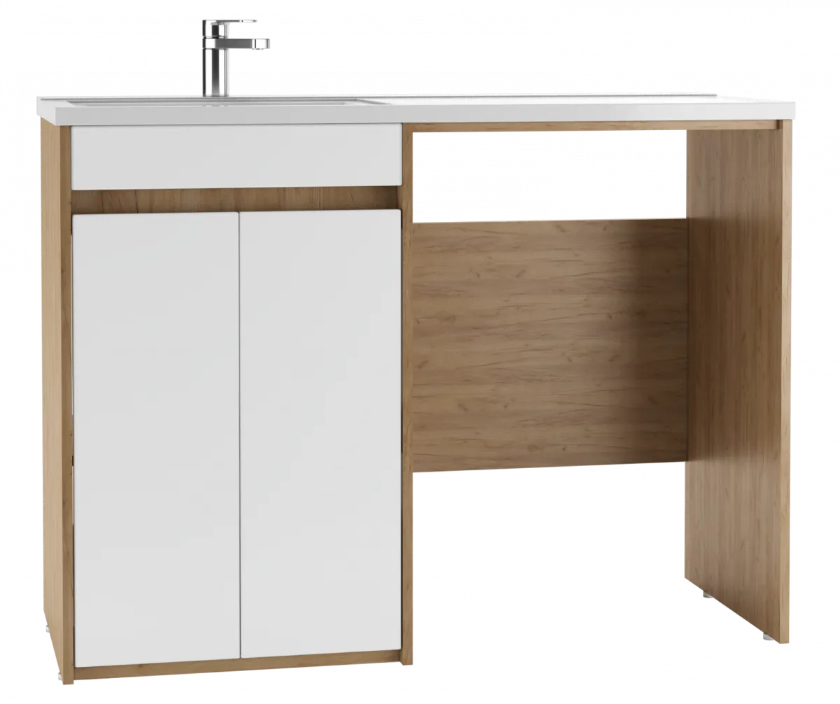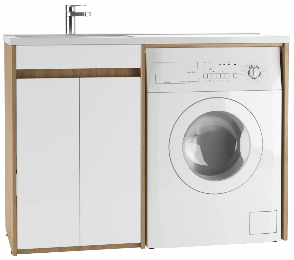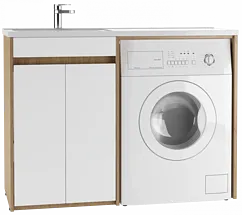 Тумба-умывальник напольный, над стиральной машиной Айсберг Домино 120 белый/дуб вотан DD4213T+