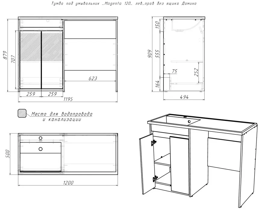 Характеристики товара Тумба-умывальник напольный, над стиральной машиной Айсберг Домино 120 белый/дуб вотан DD4213T+