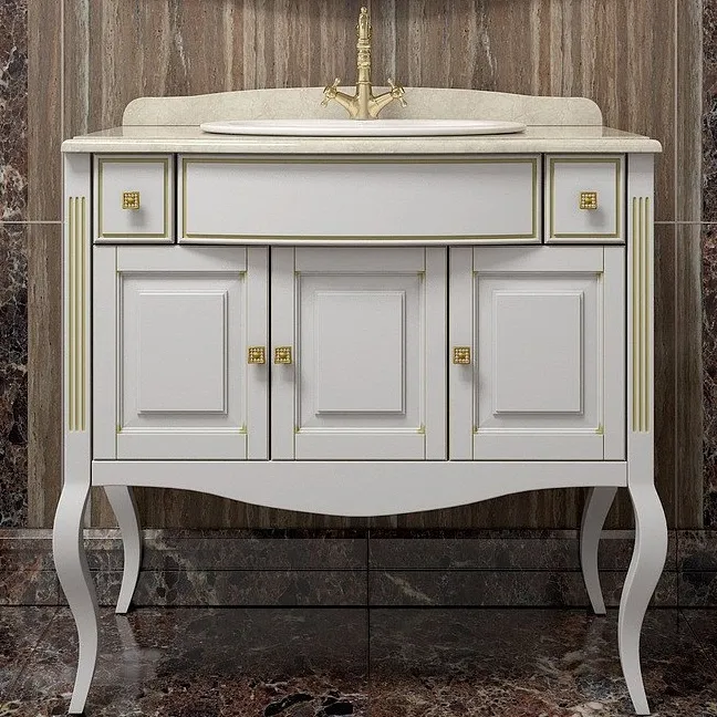 Тумба-умывальник напольный Opadiris Лаура 100 белый матовый/с золотой патиной Z0000007090+10.210.01000.001