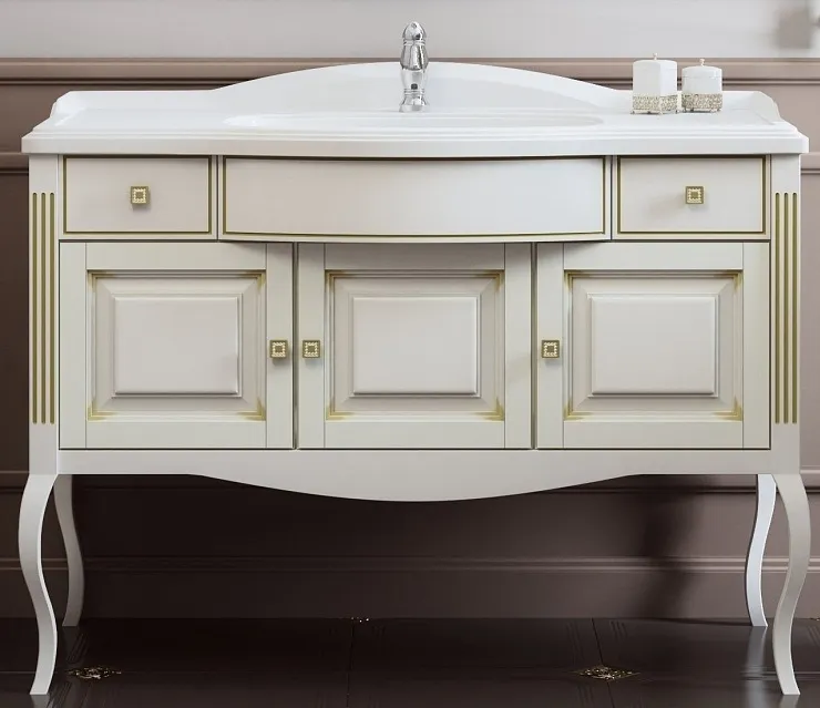 Тумба-умывальник напольный Opadiris Лаура 120 белый матовый/с золотой патиной Z0000009324+10.210.01200.001