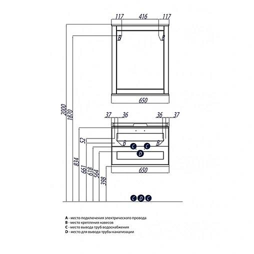 Характеристики товара Тумба-умывальник подвесная Aquaton Леон 65 ясень чёрный 1A1870K0LBPT0