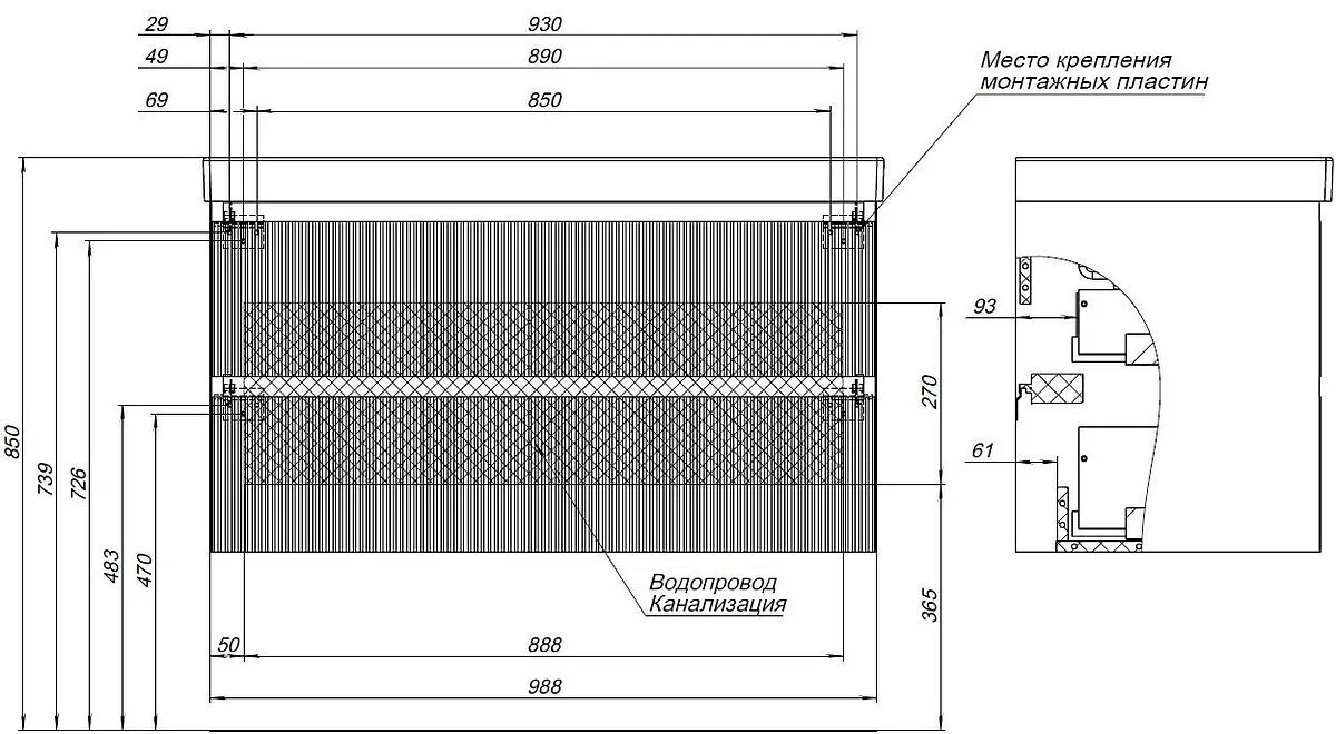 Характеристики товара Тумба-умывальник подвесная Aquanet Альтера 100 белый матовый 00337157+00333270