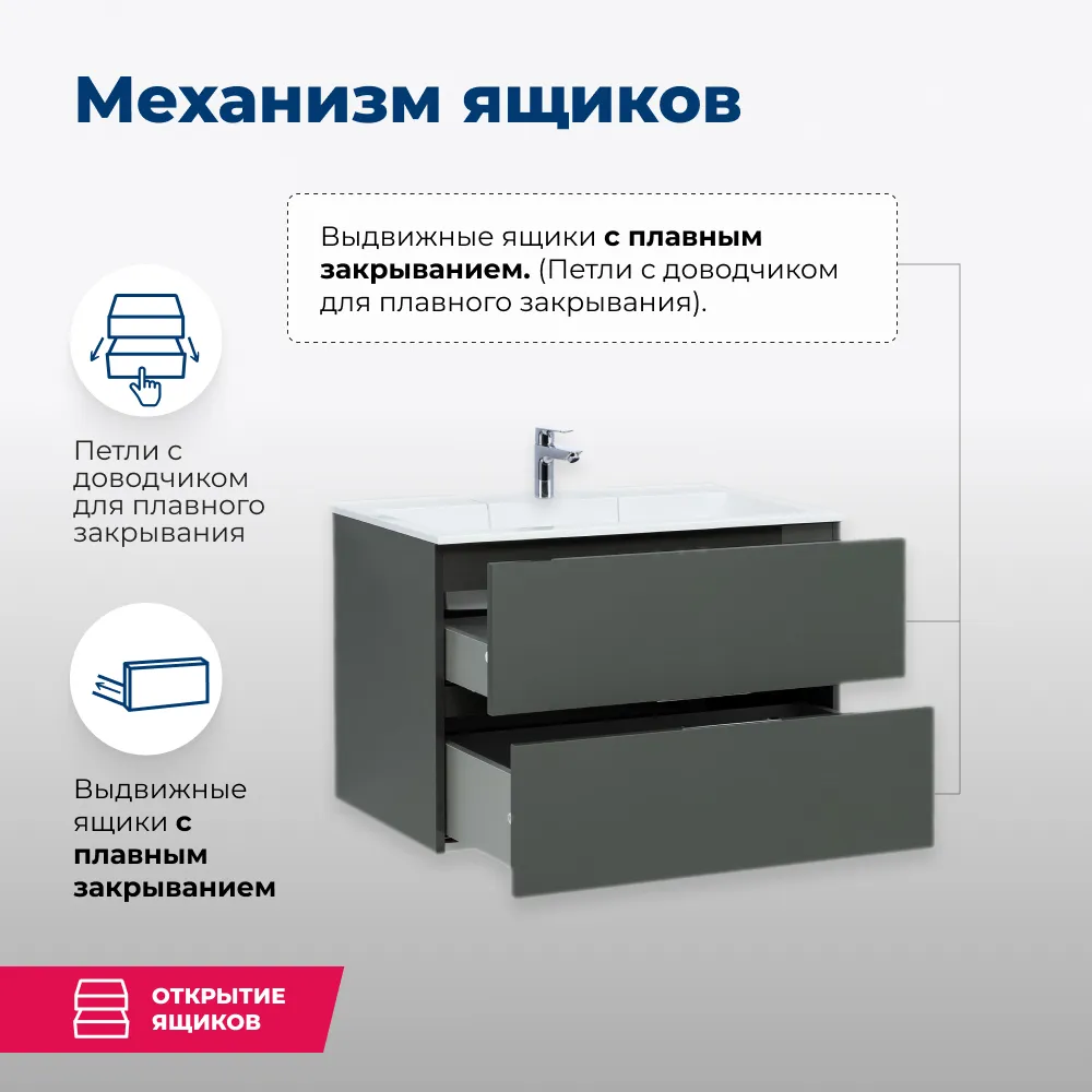 Характеристики товара Тумба-умывальник подвесная Aquanet Алвита 80 серый антрацит 00215120+00187094