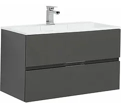 Тумба-умывальник подвесная Aquanet Алвита 90 серый антрацит 00240111+00187182