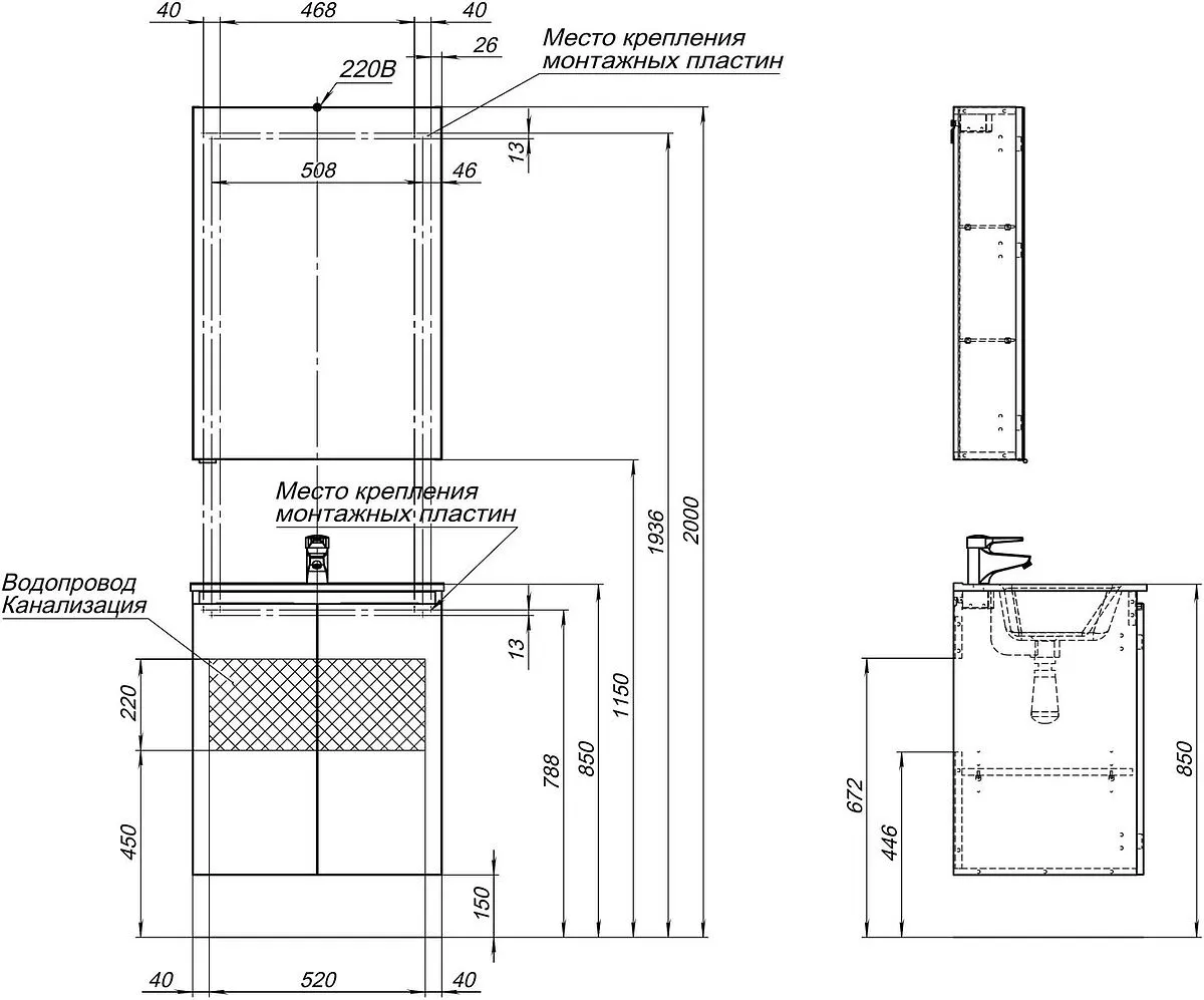 Характеристики товара Тумба-умывальник подвесная Aquanet Алвита New 60 серый 00277524+00254363